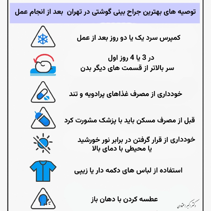 ✅ توصیههای بهترین جراح بینی گوشتی در تهران پس از عمل