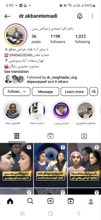 برای مشاهده نمونهکارهای قبل و بعد از جراحی بینی گوشتی، ویدیوهای آموزشی و بررسی تخصص دکتر اکبر اعتمادی، میتوانید به پیج رسمی اینستاگرام ایشان مراجعه کنید. این صفحه یکی از فعالترین و معتبرترین پیجهای پزشکی در حوزه زیبایی بینی گوشتی در تهران است.